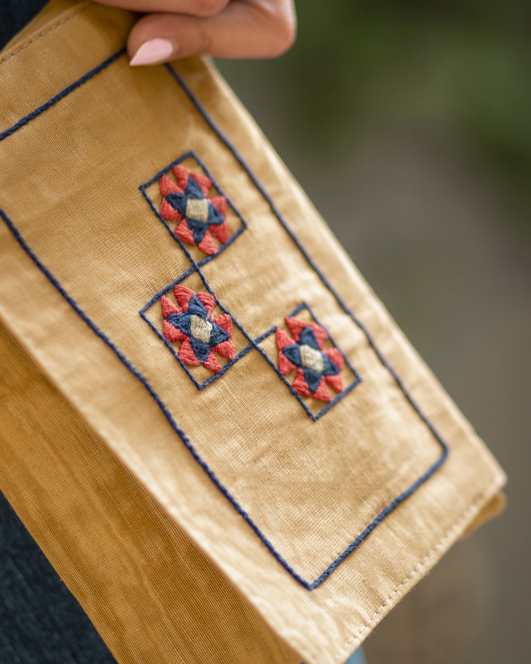 Golden Mosaic Pouch is from our mosaic collection, embroidered on Sayeh textile with pure cotton threads.
