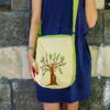 Discover the perfect blend of tradition and contemporary style with our exquisite hand-embroidered bag. This unique piece, meticulously crafted by talented Syrian women, features a beautiful hand-embroidered olive tree motif. The design is from our Idelbi collection. Its inspiration from the abundant olive groves of Idleb, a region in Syria celebrated for its rich agricultural heritage.
