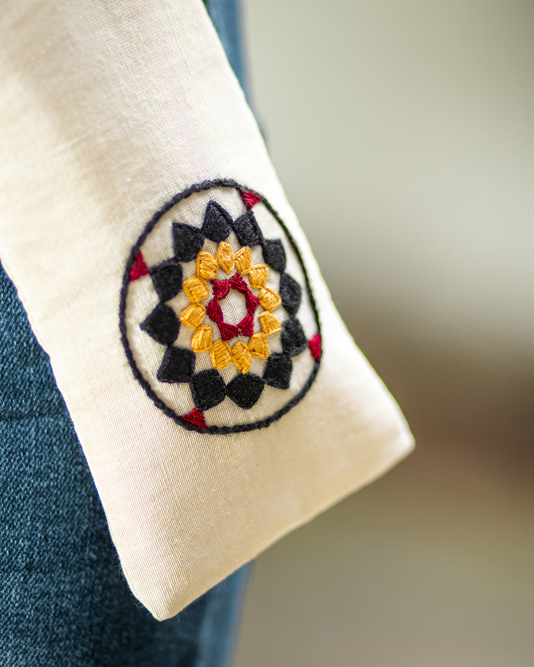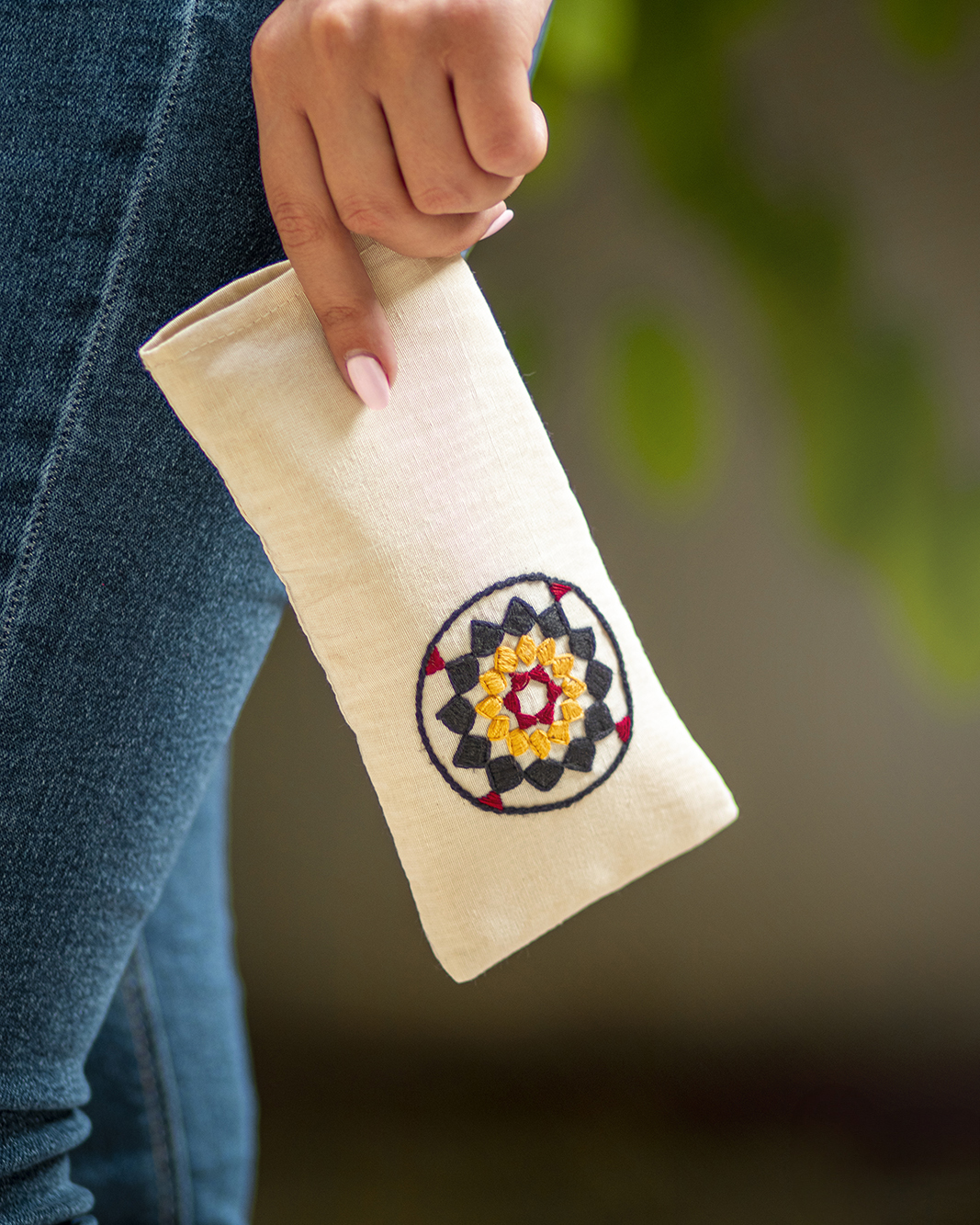 White Mosaic Glass Pouch is from our Mosaic collection. It is embroidered on Sayeh textile which is Damascus specialty silk fabric.