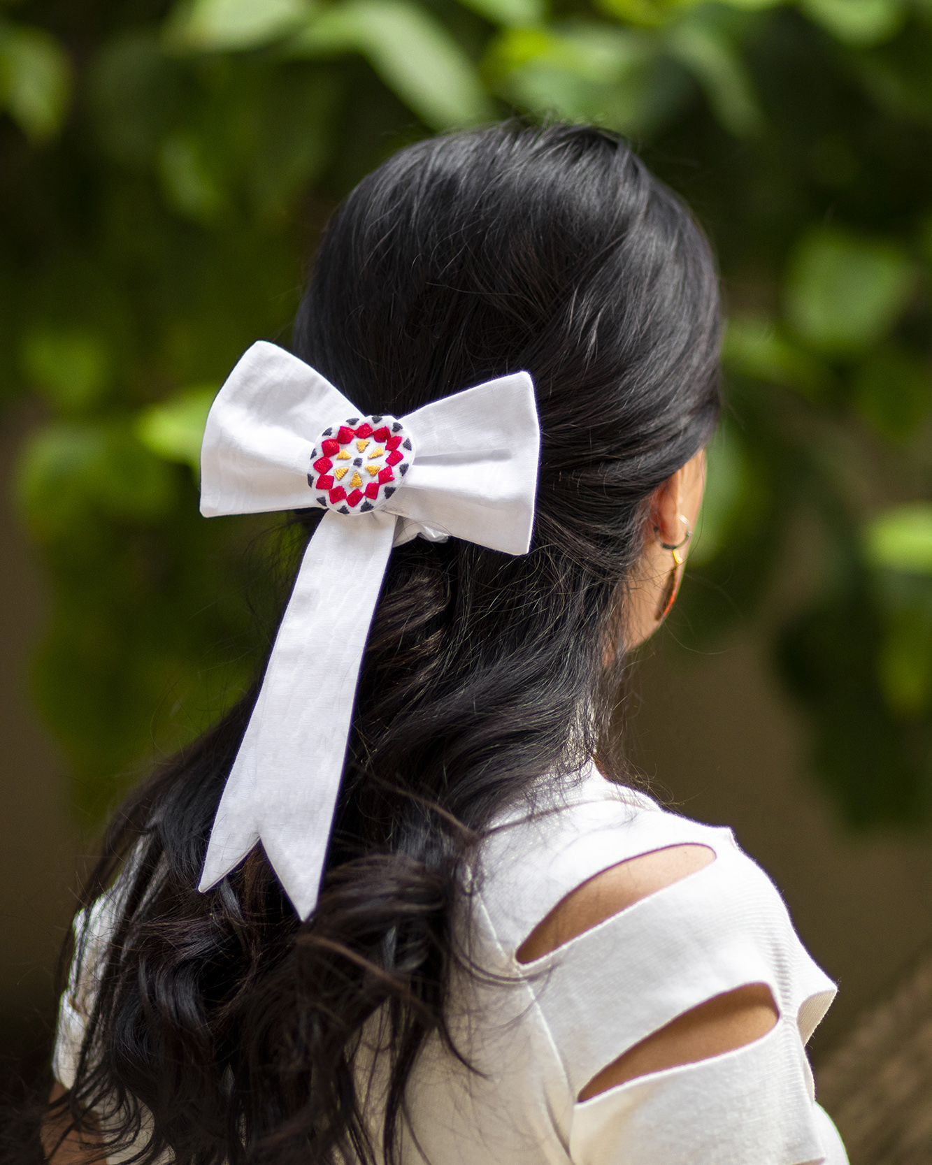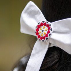 White Mosaic Hair Setis from our Mosaic collection, Hand embroidered from natural cotton threads. This elegant tie hair gives your hair elegant touch and holds it up the way you like it.