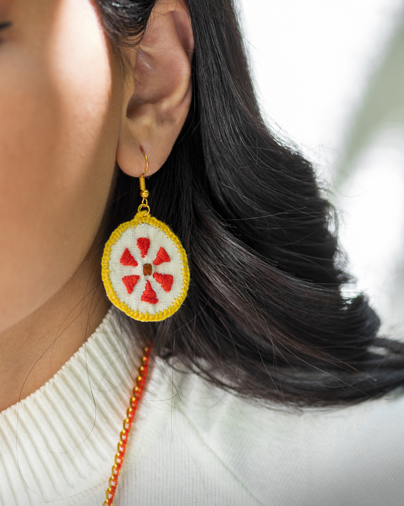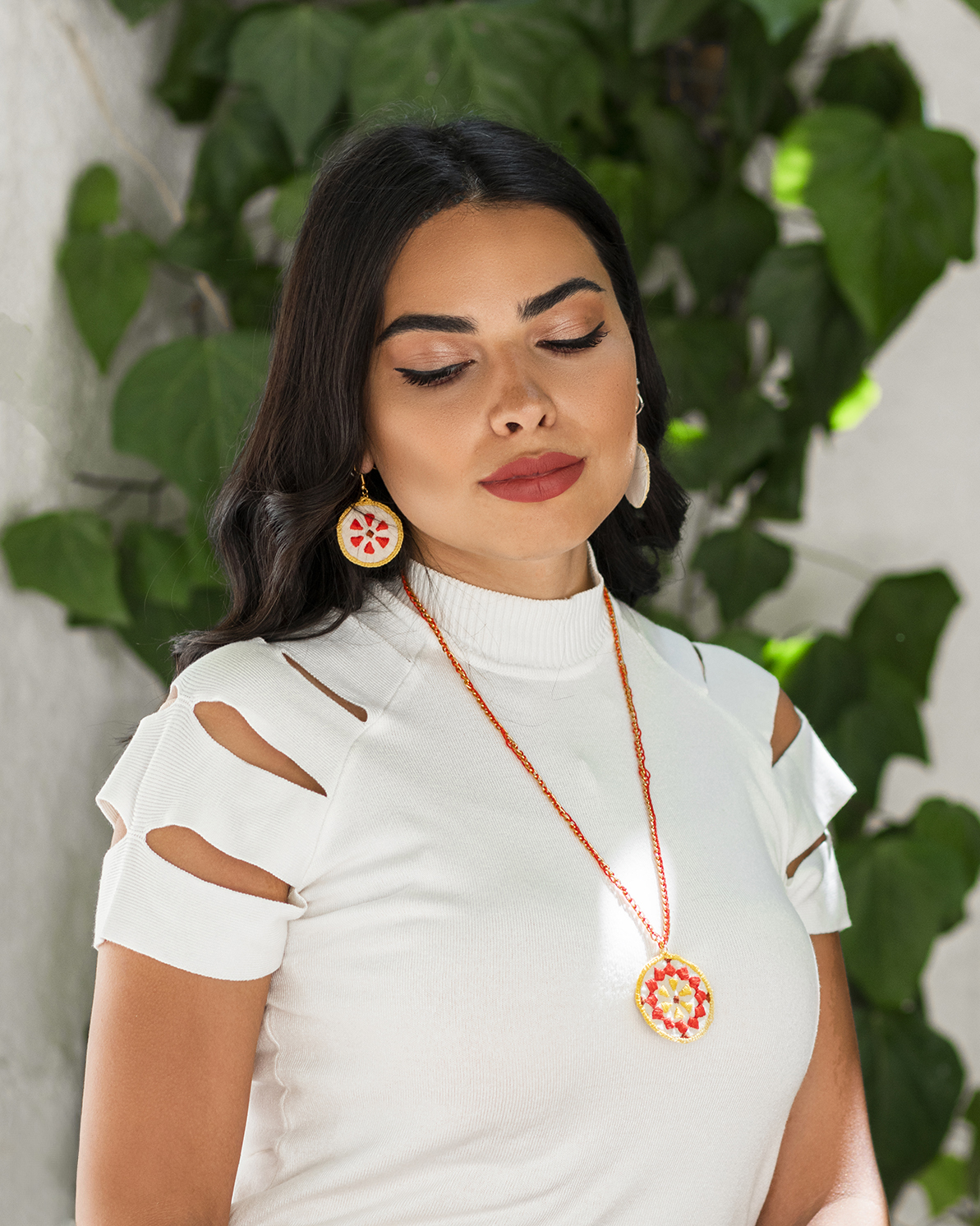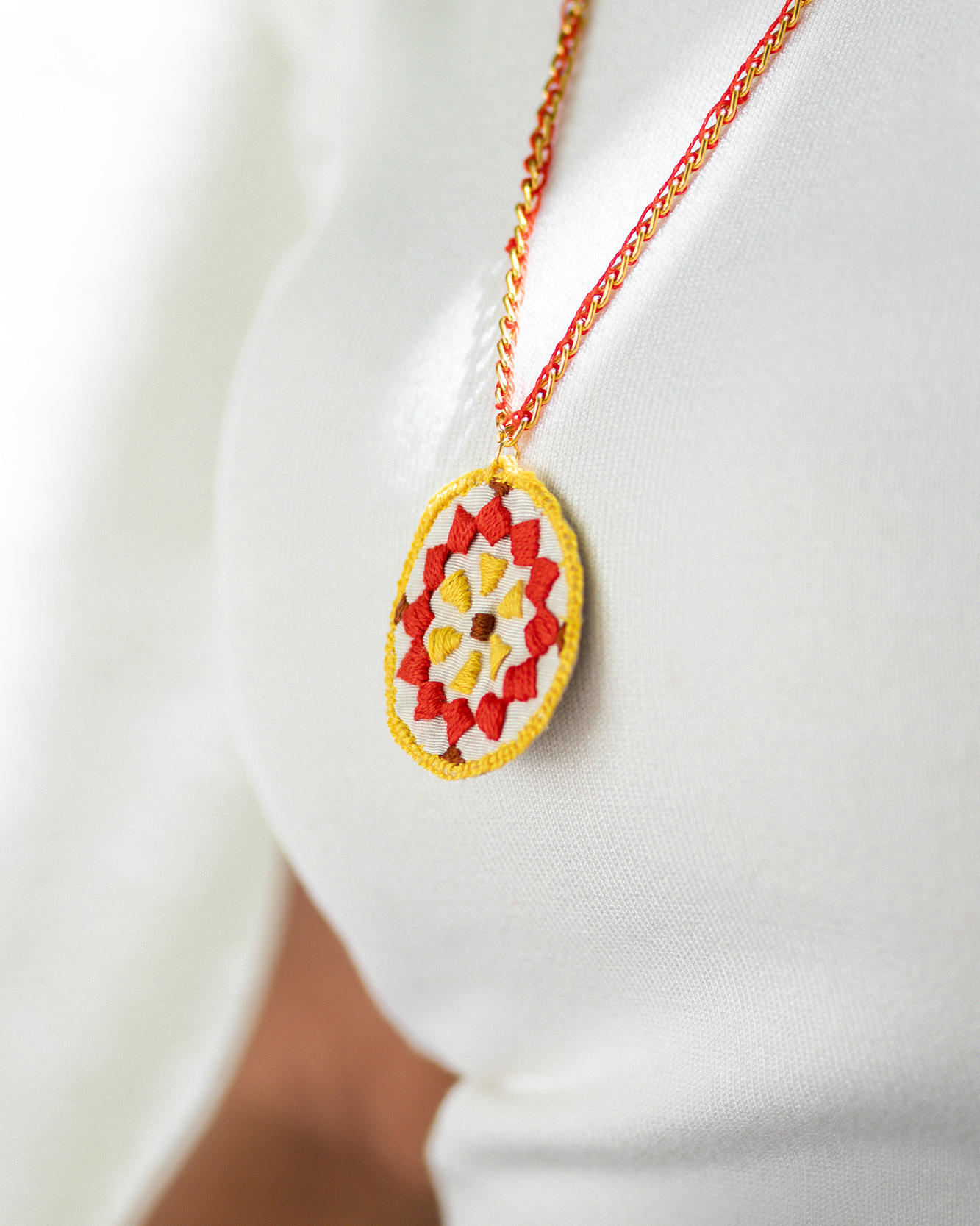 The choker and earrings are embroidered with pure cotton threads on Sayeh fabric. Lined on the back with a piece of thin leather. The edges are embroidered to add a touch of beauty and elegance to the set.